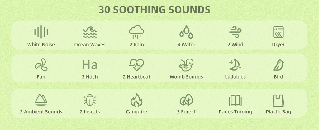 • 🎶 30 soothing sounds – white noise, lullabies & nature sounds